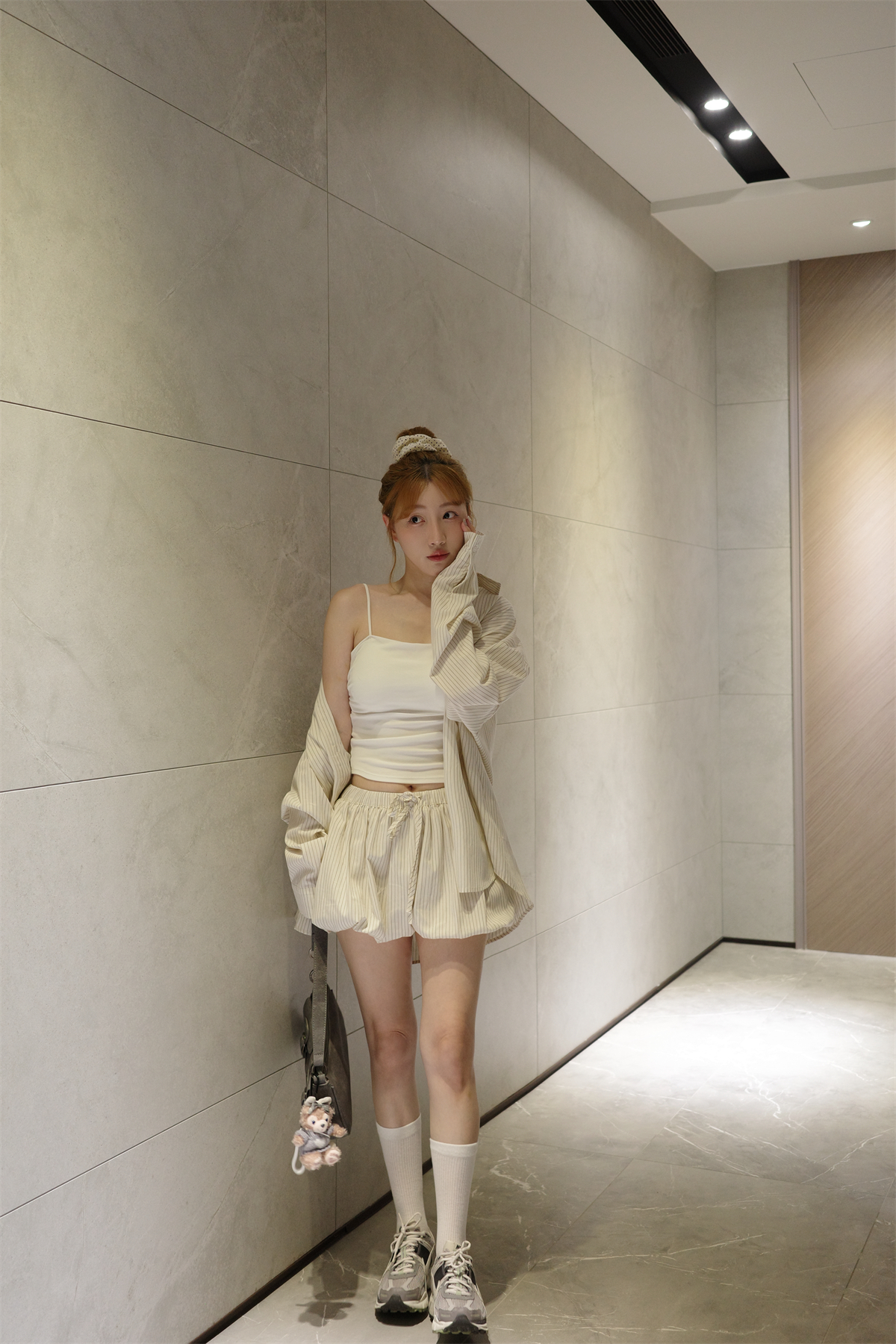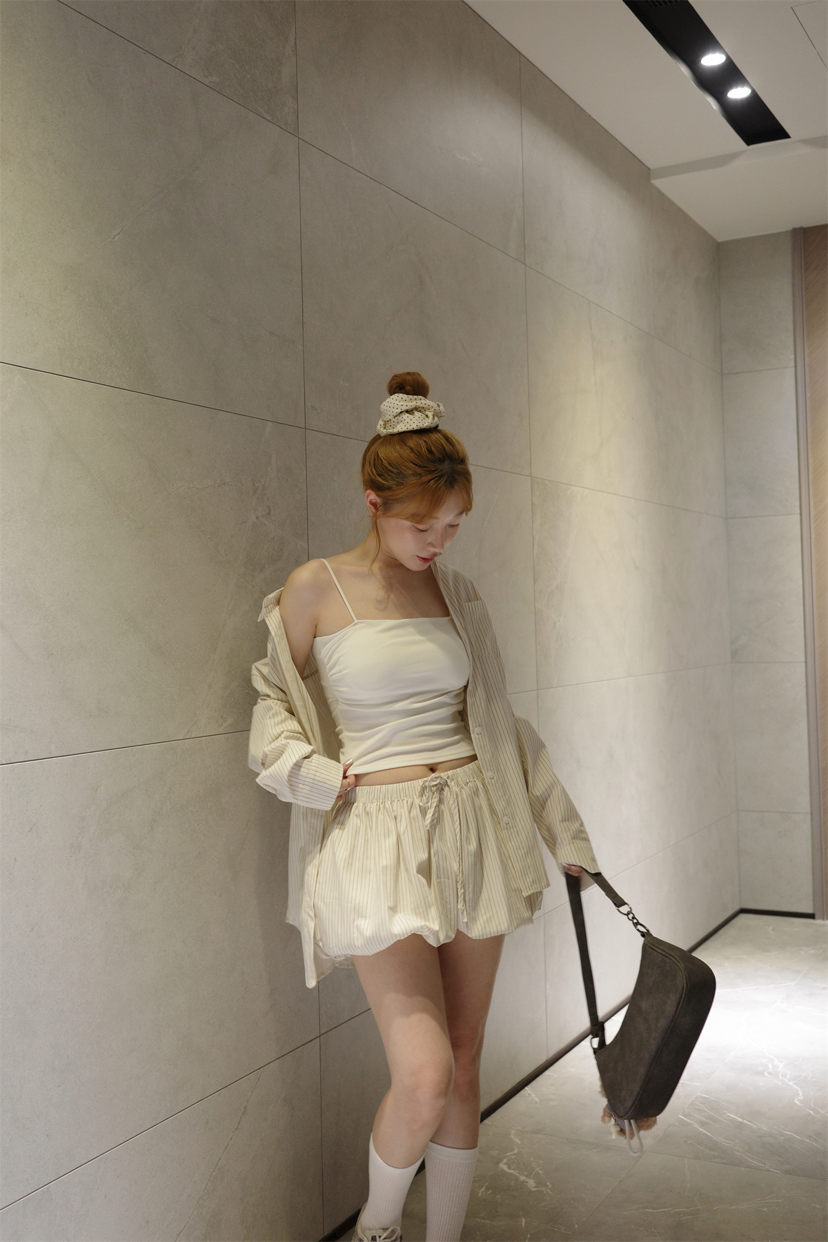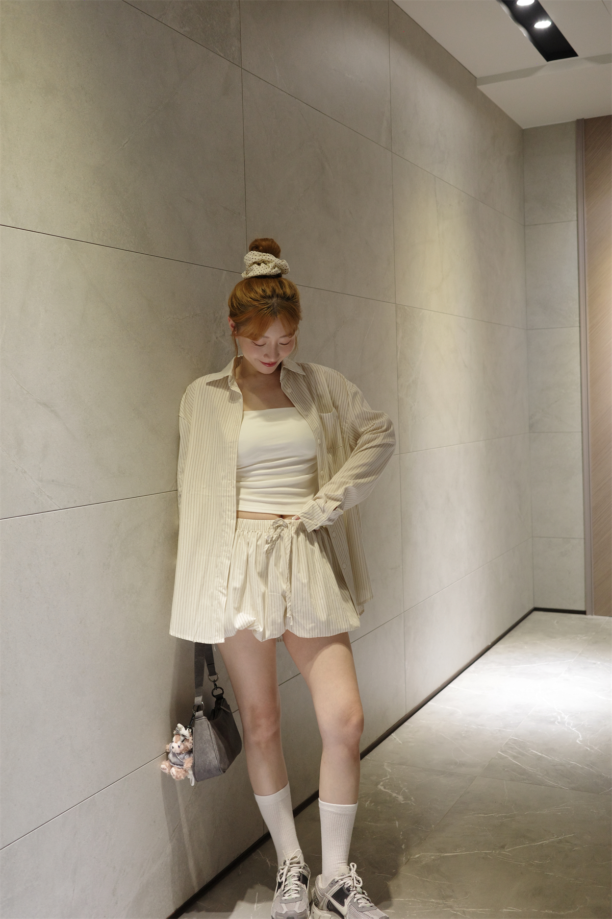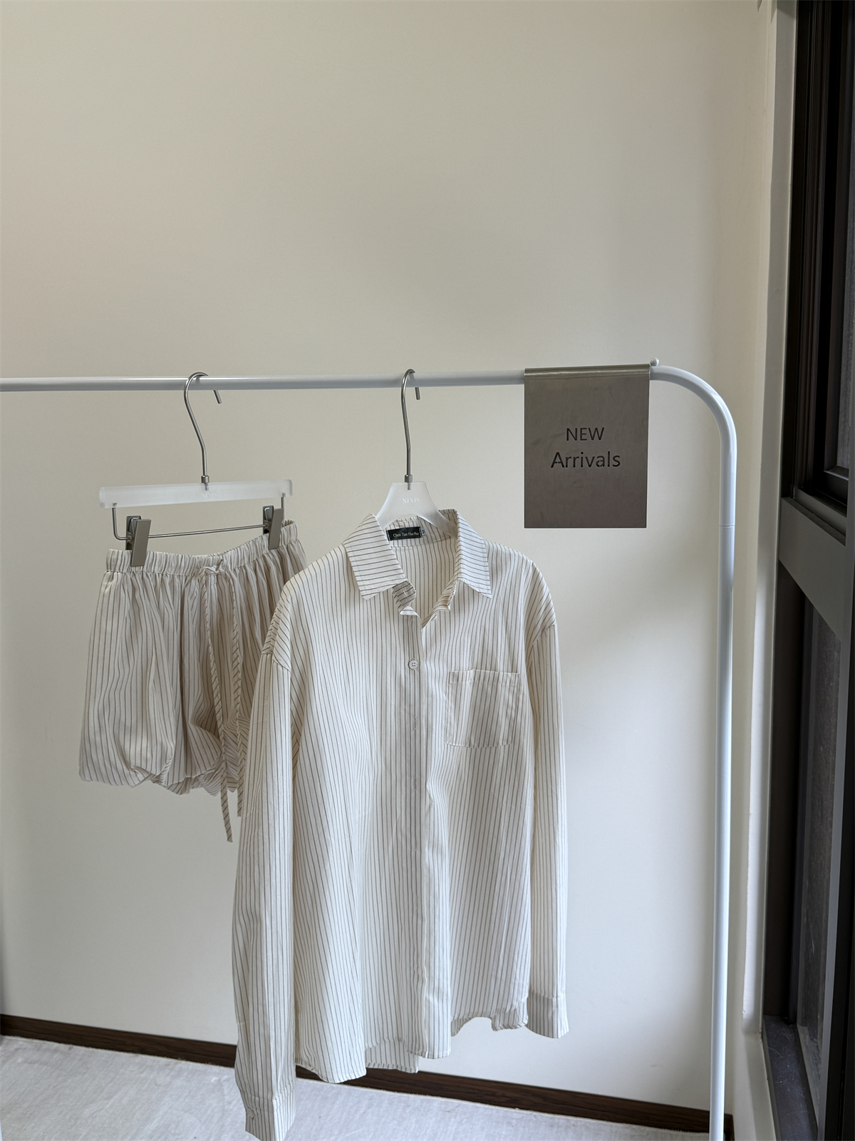 // 休閒的直紋襯配雲朵褲真嘟太可愛啦~~~