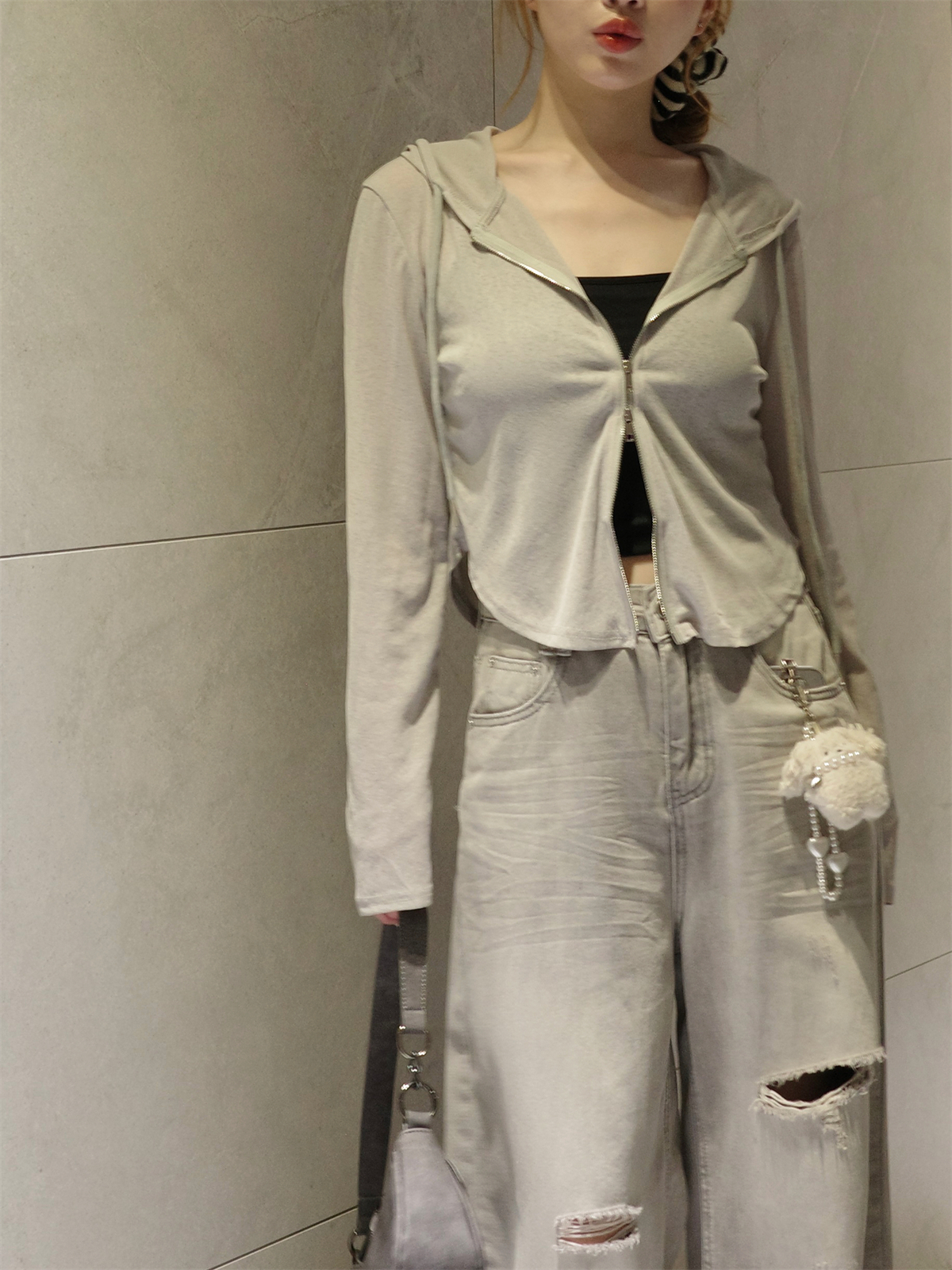 細織連帽薄外