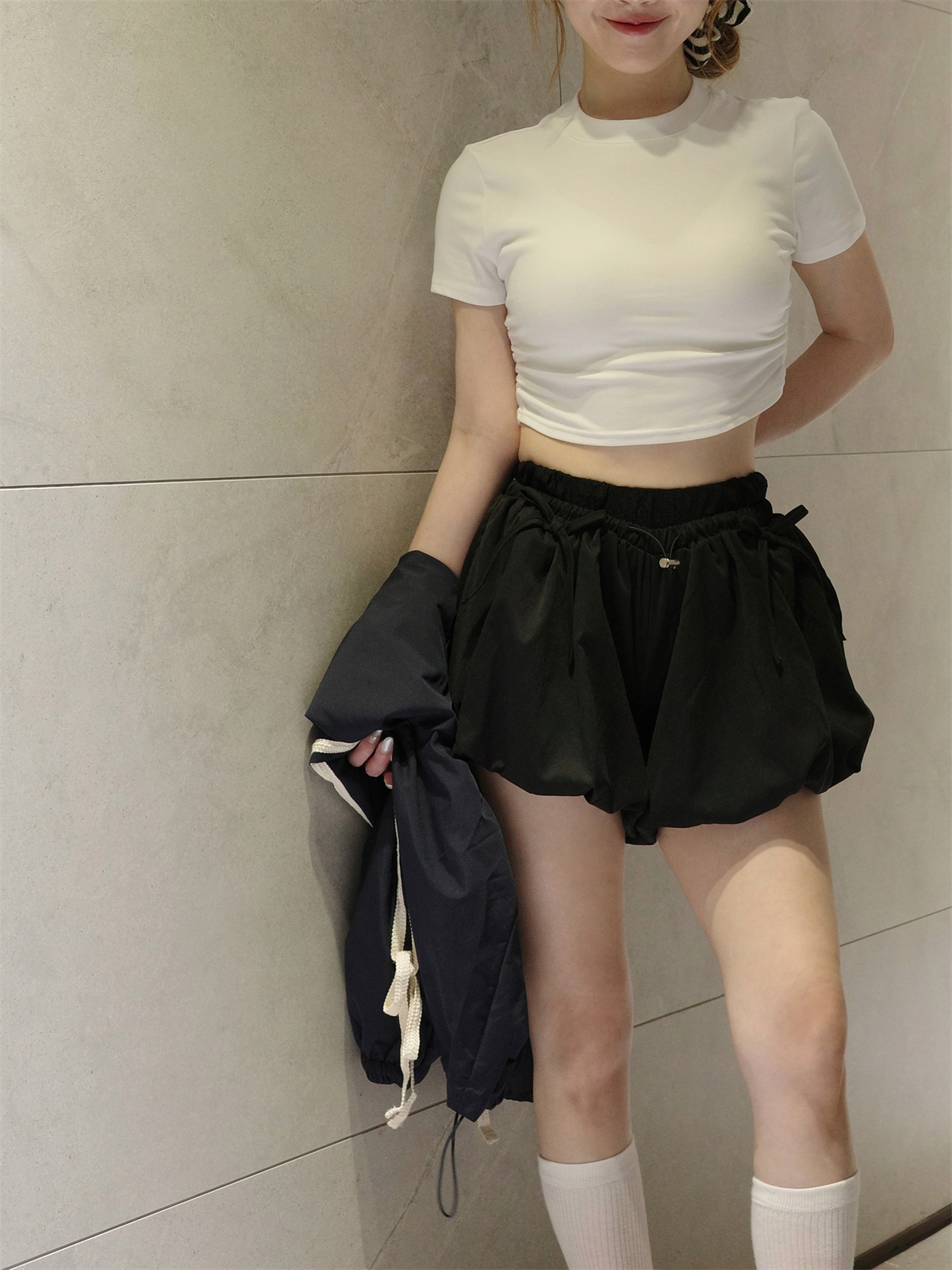 側抓皺短版Tee