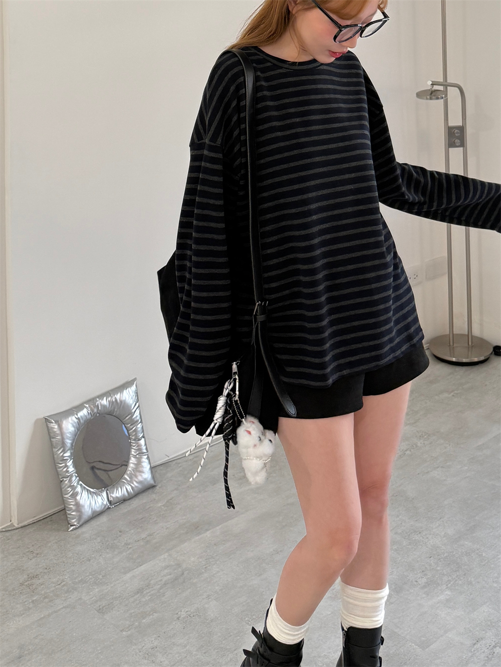 寬鬆條紋棉衣