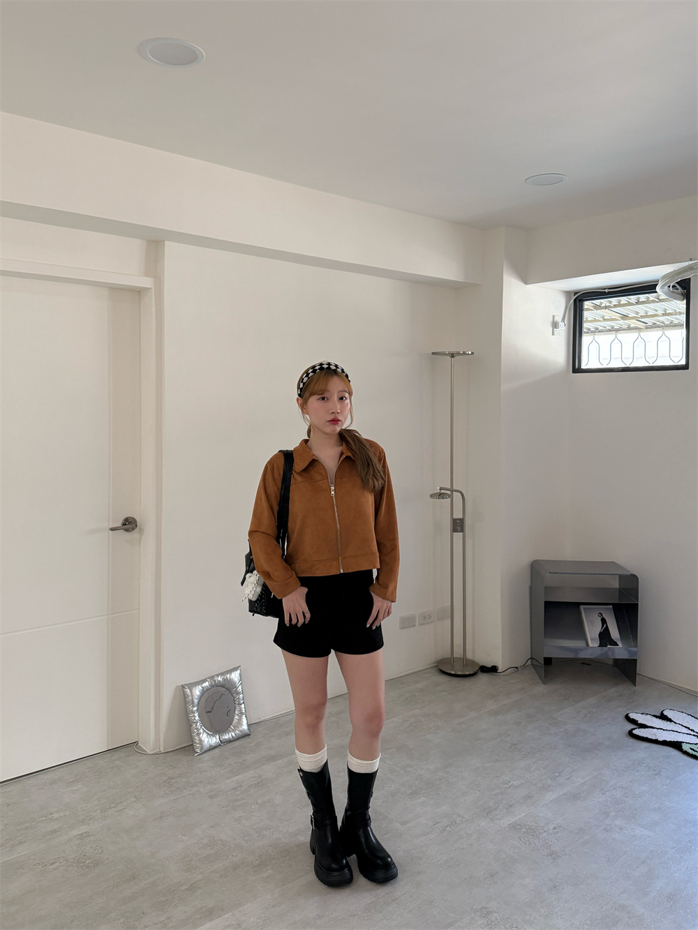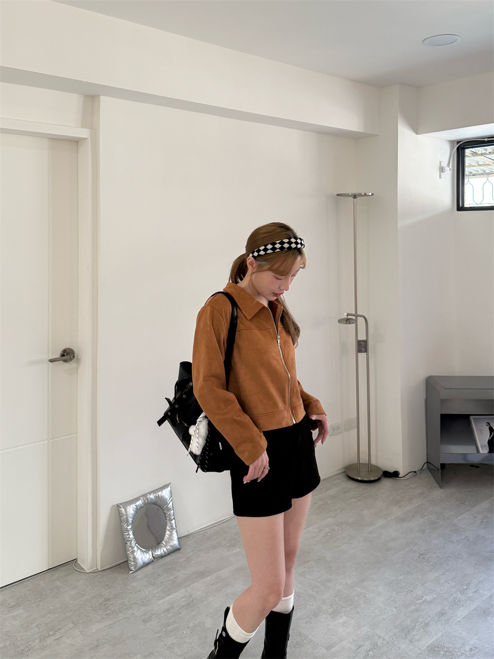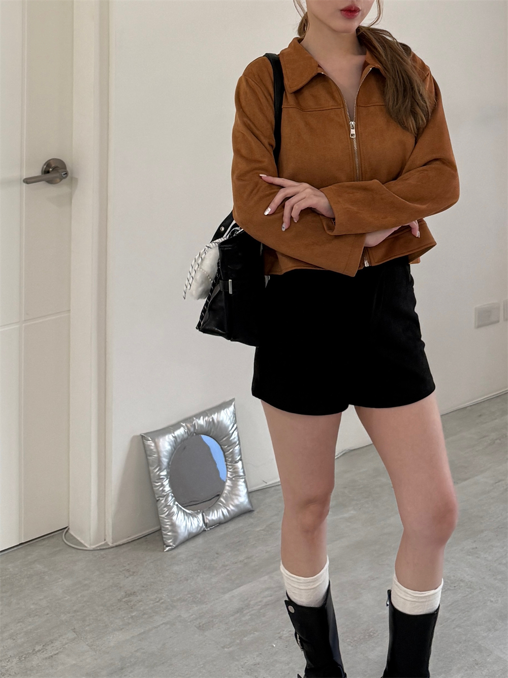 甜酷麂皮拉鍊外