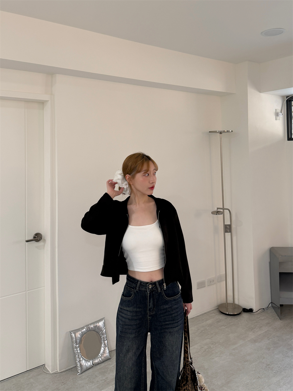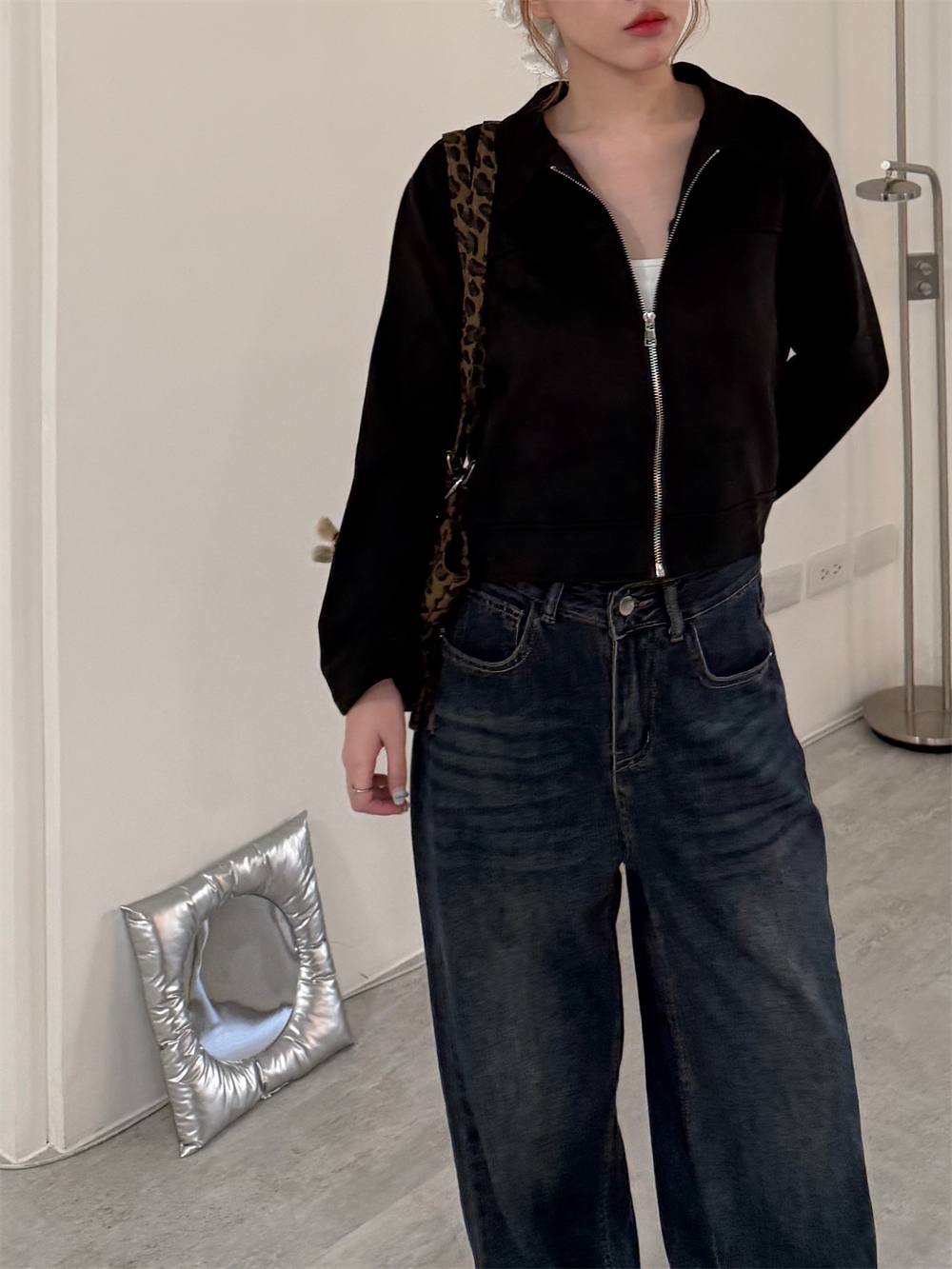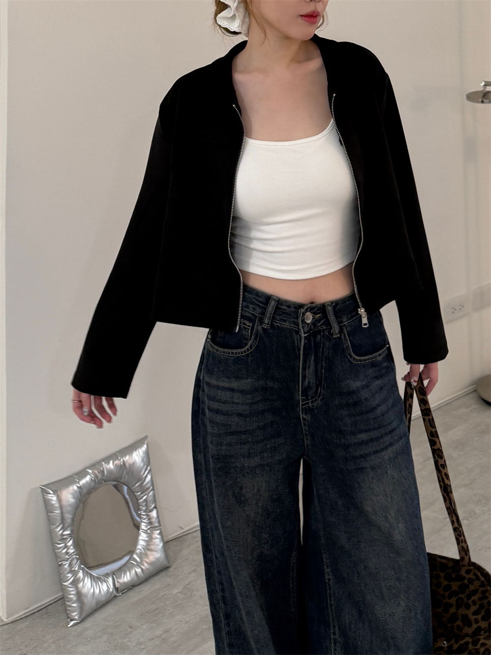 甜酷麂皮拉鍊外