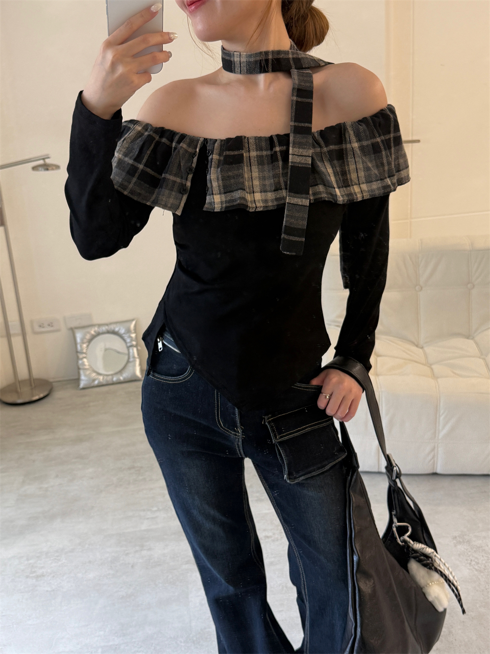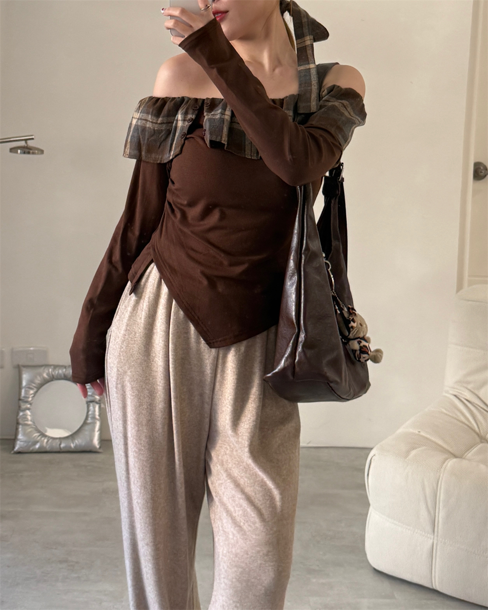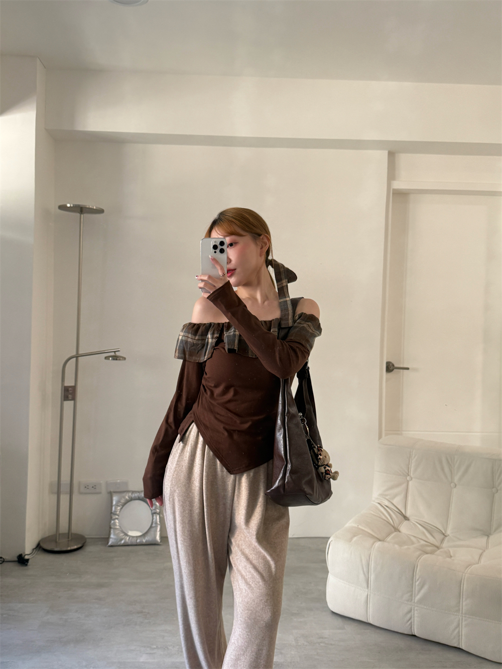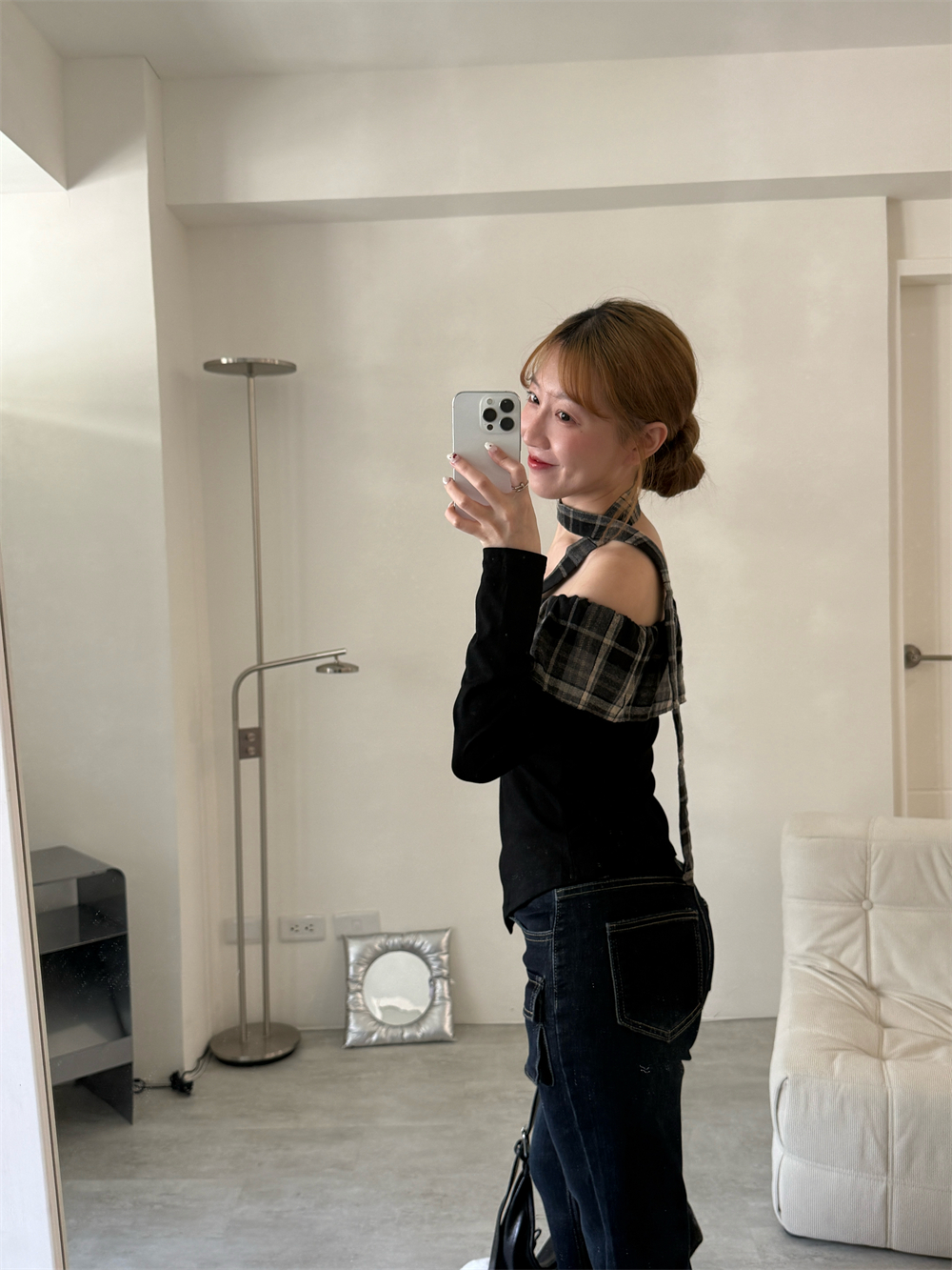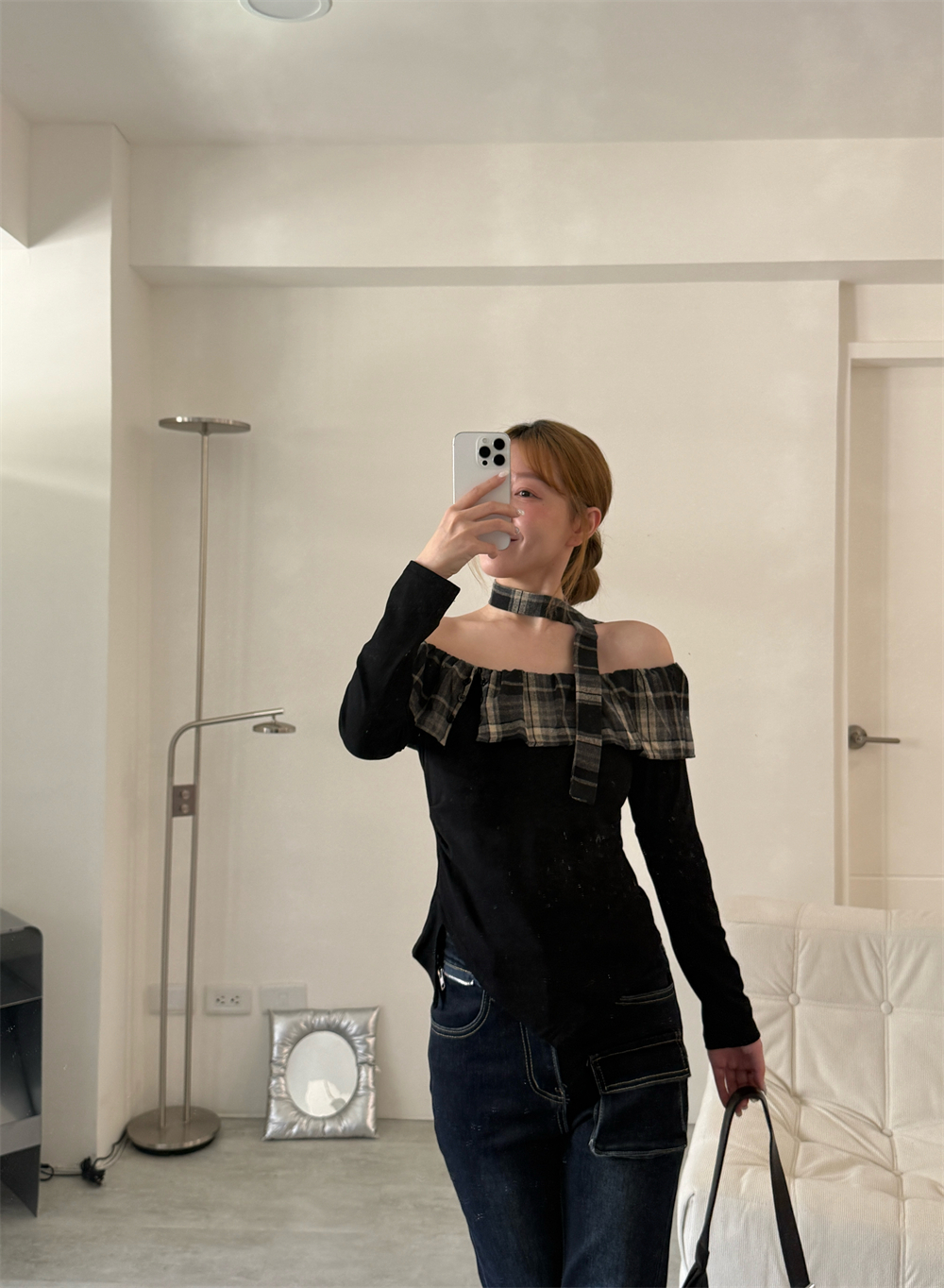 // 唯美秋冬一字領♡ 格紋配色真的太喜歡了!!!繞脖還可綁頭髮~