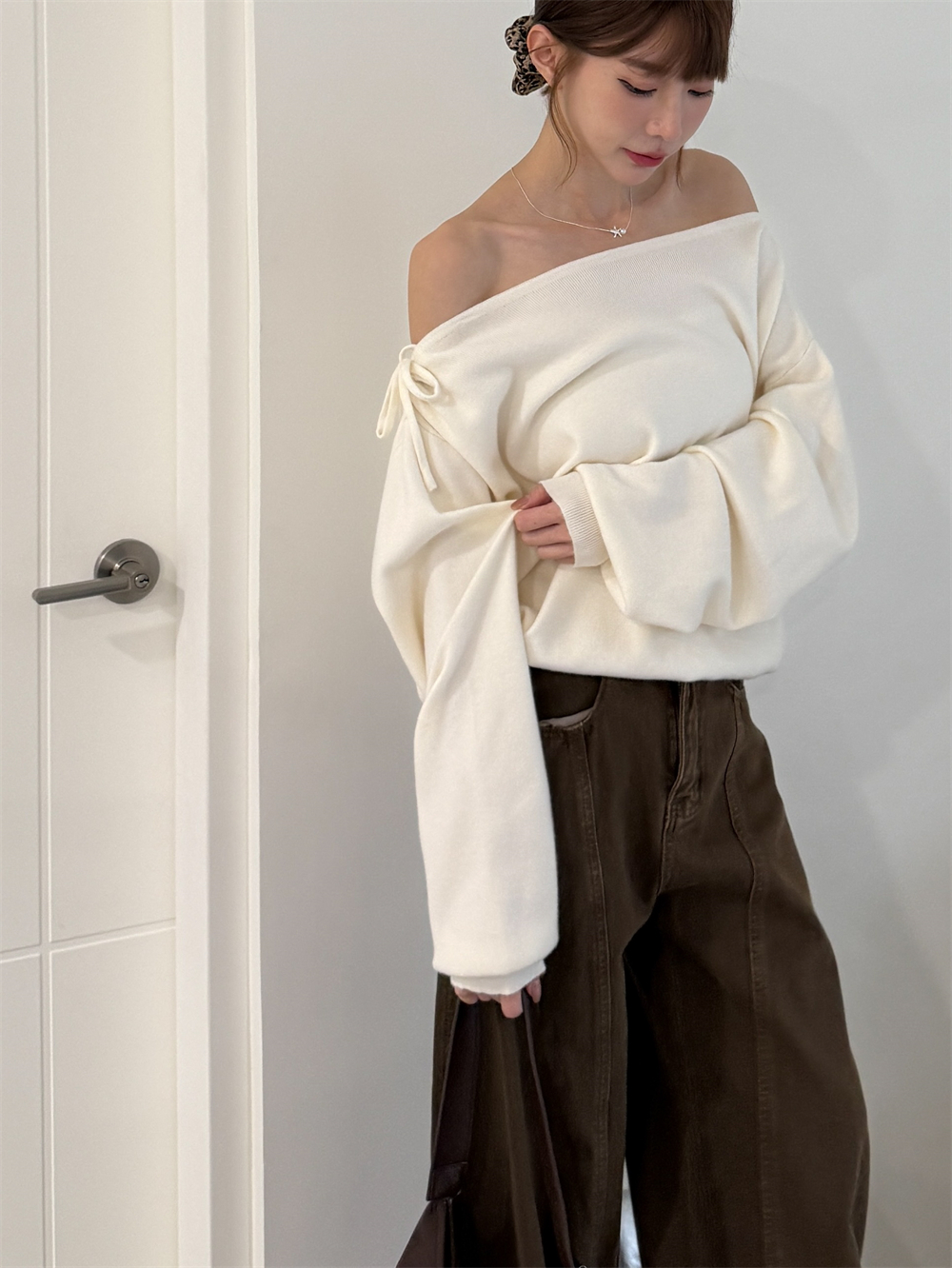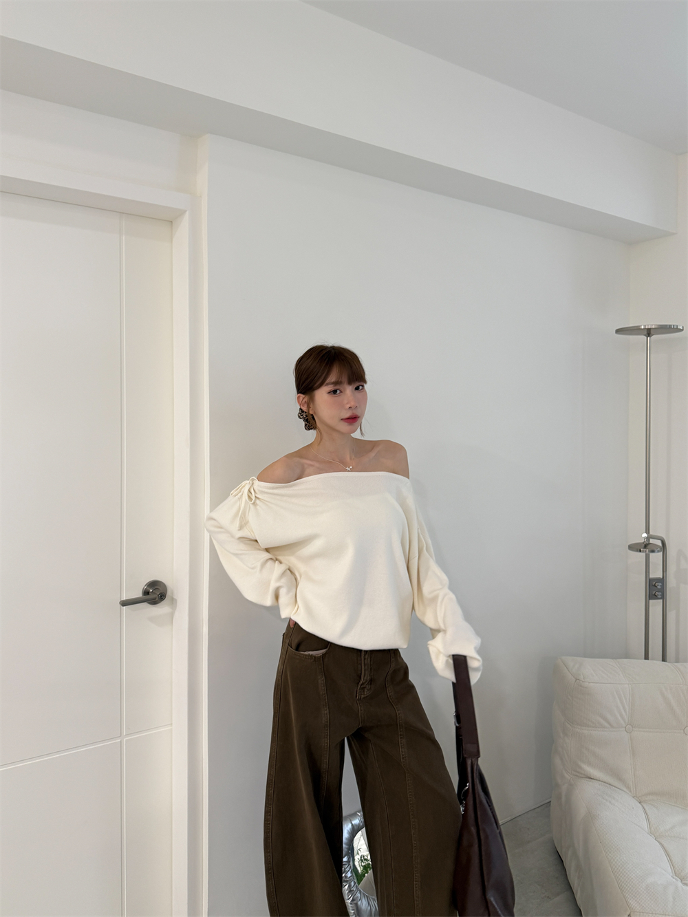 // 超柔軟多穿針織衣♡♡可正常穿+斜肩+一字領!