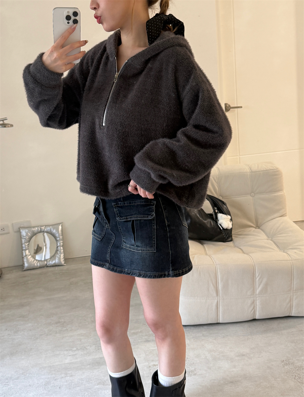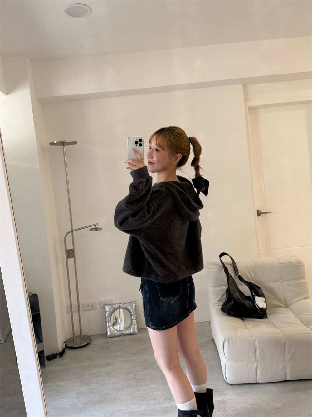 // 慵懶可愛的連帽針織tee 毛絨絨超舒服♡