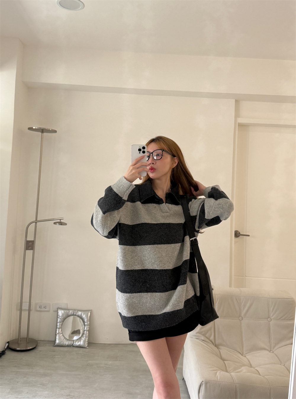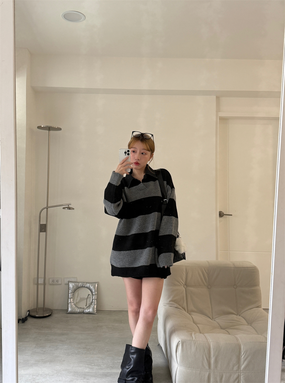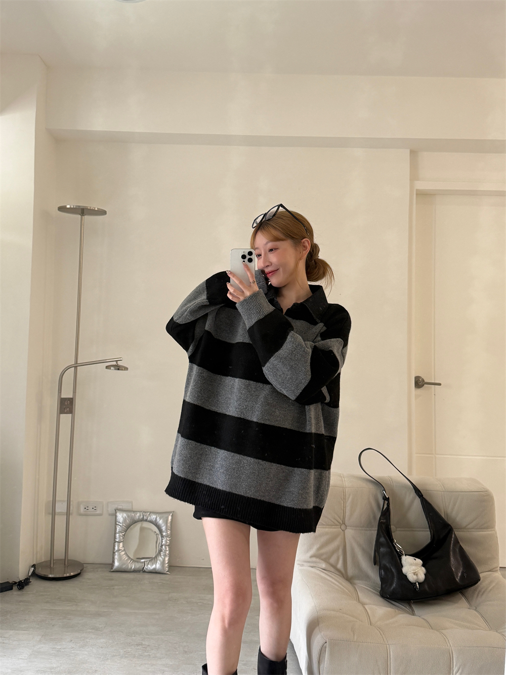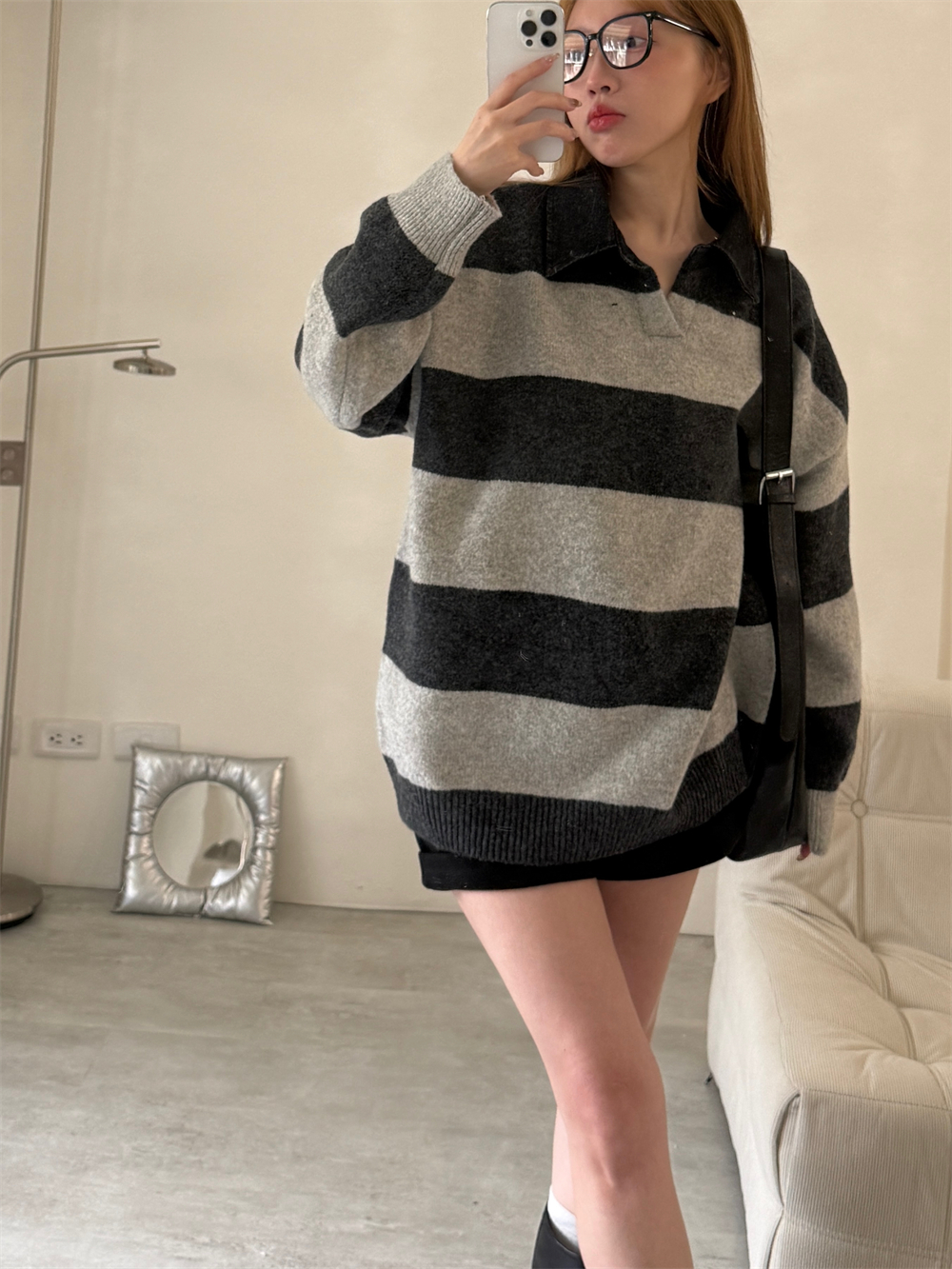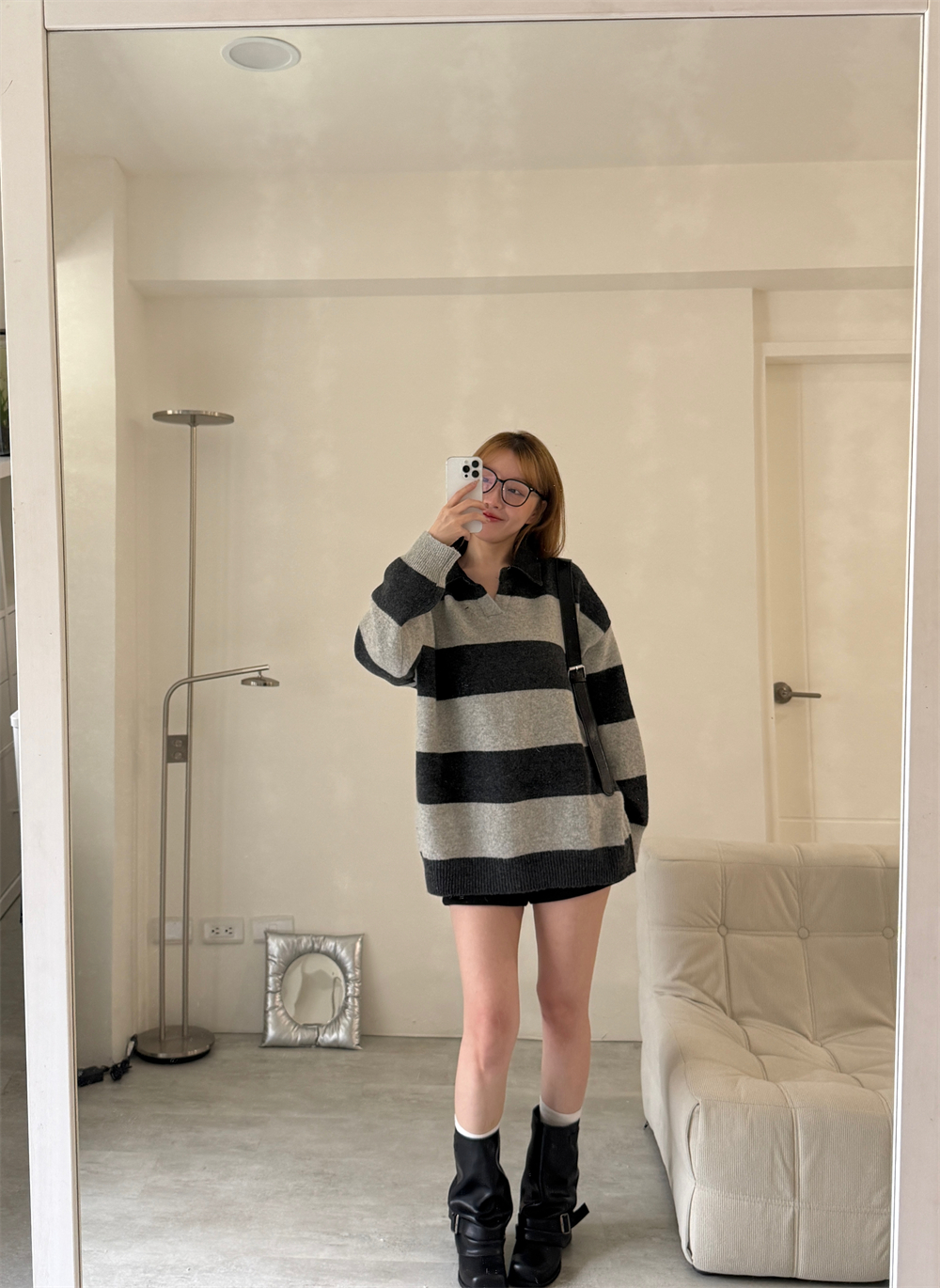 // 日常寬鬆的大毛衣配上牛仔領設計太喜歡♡