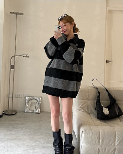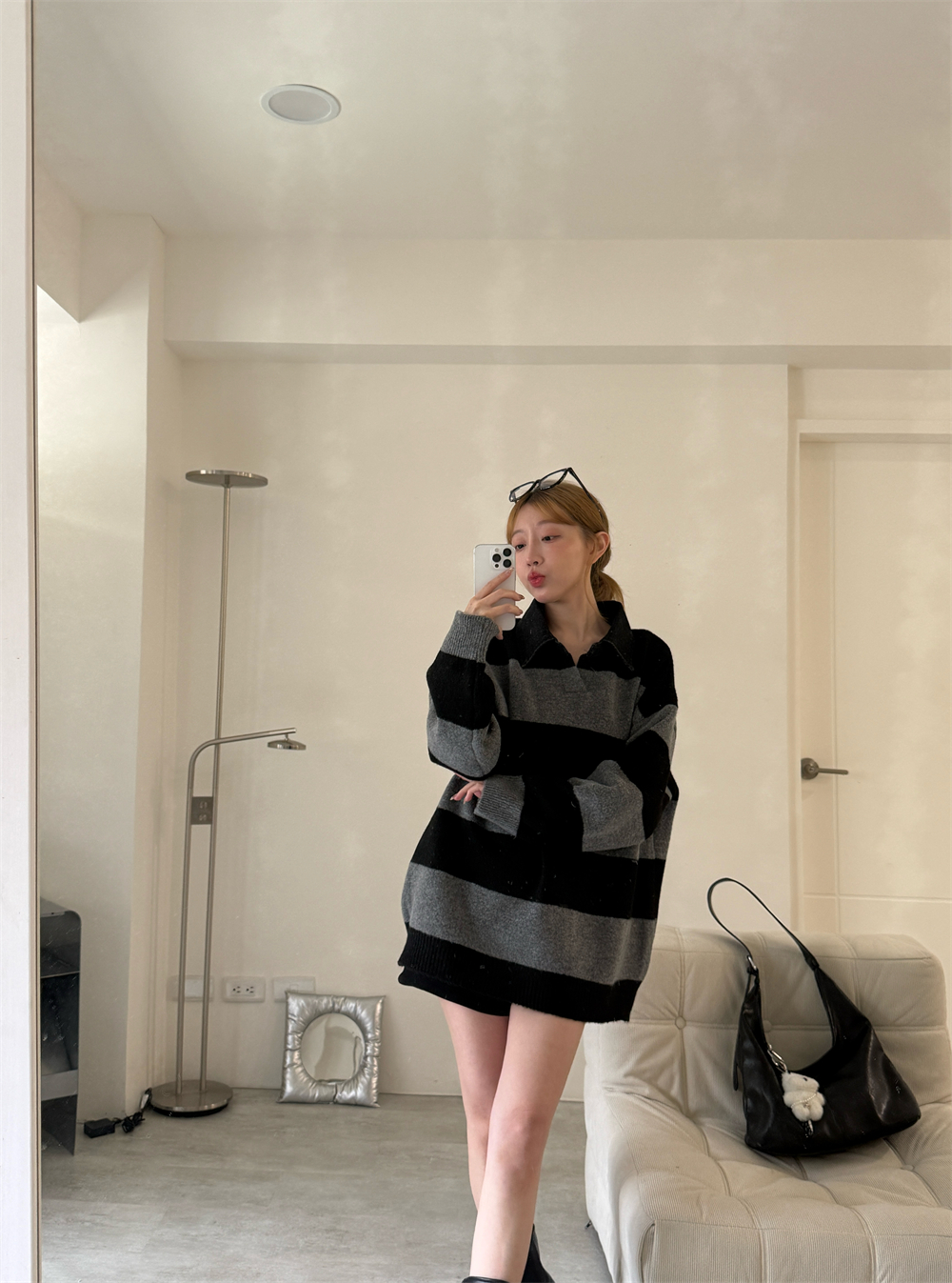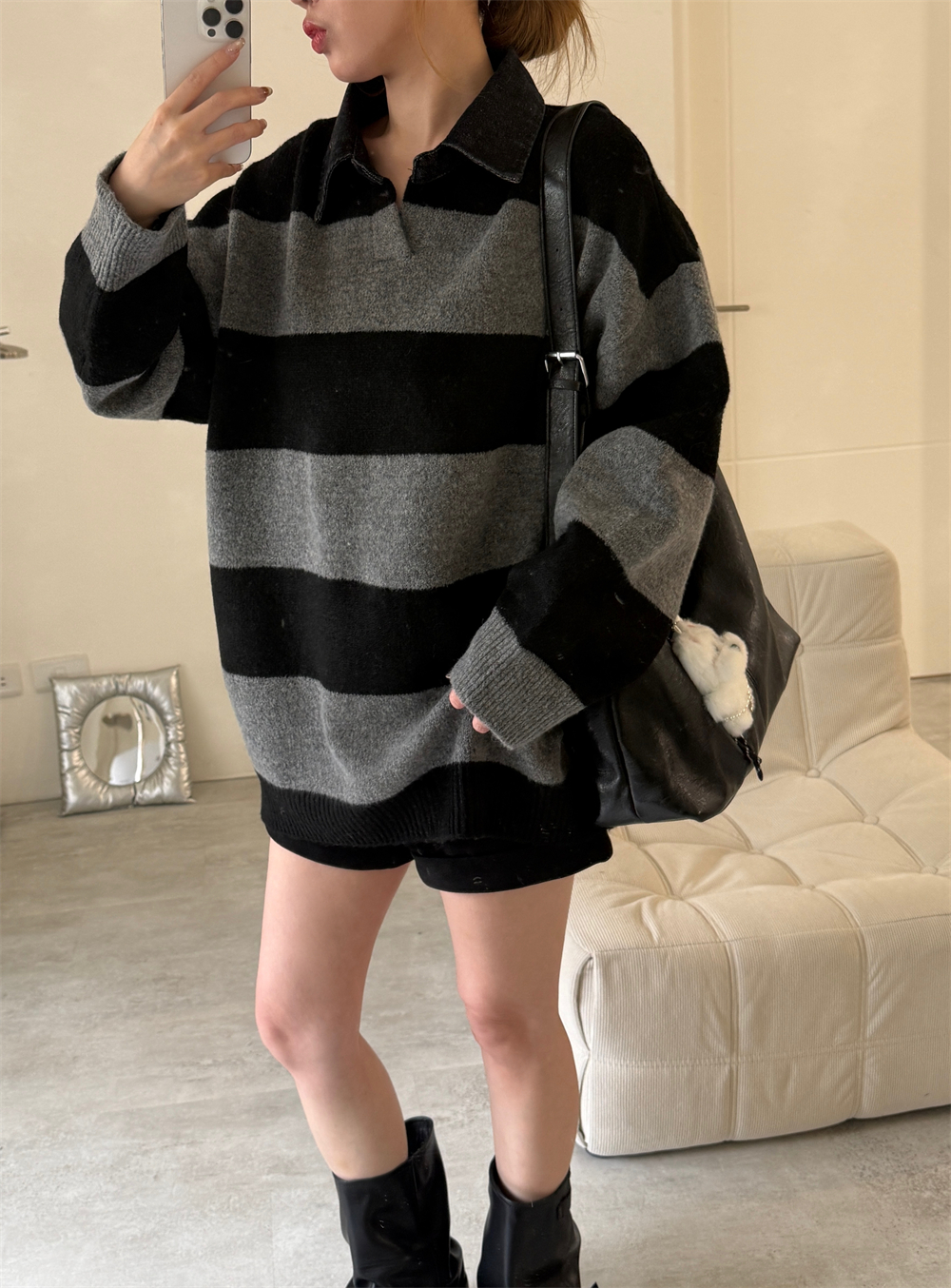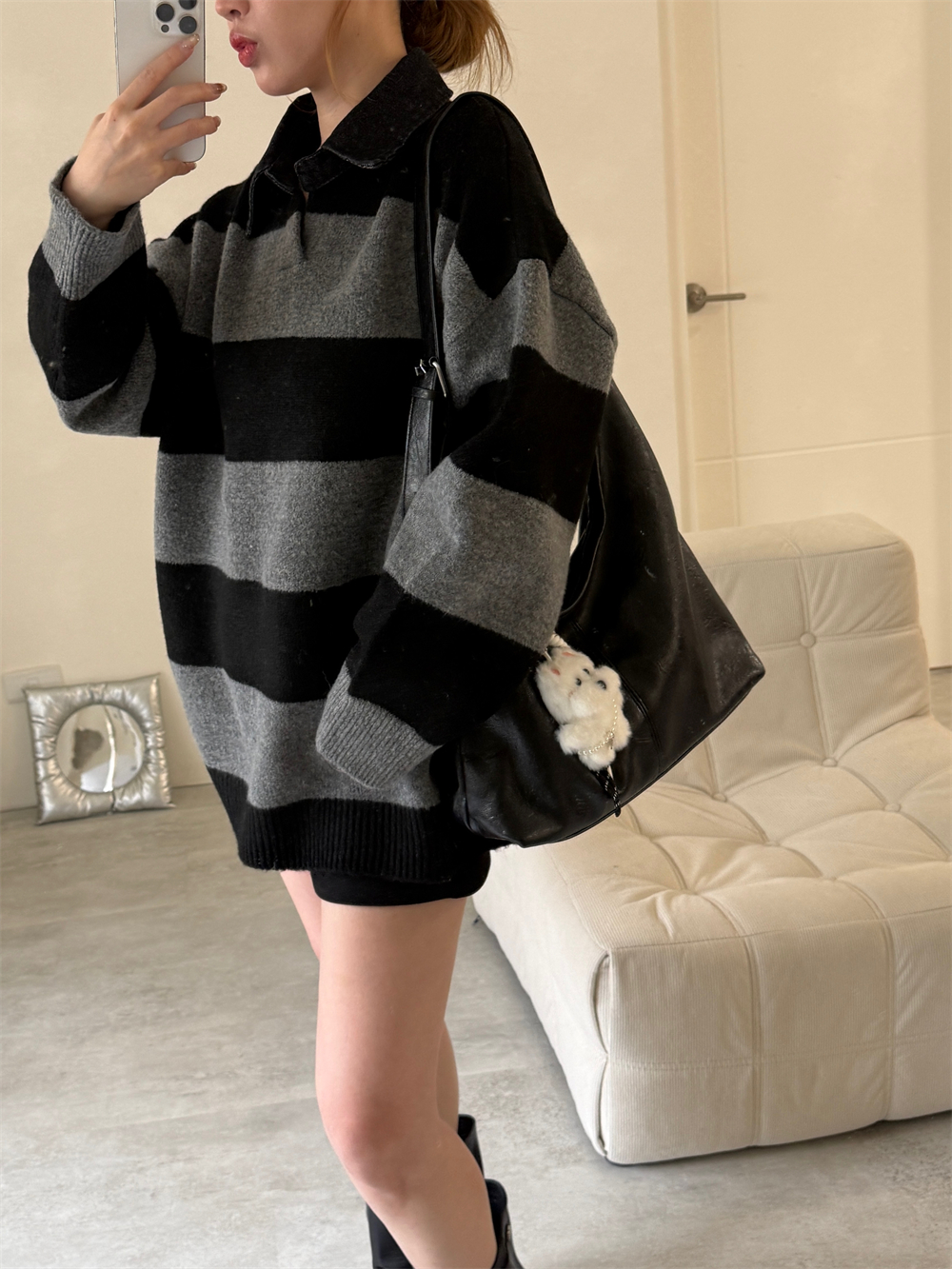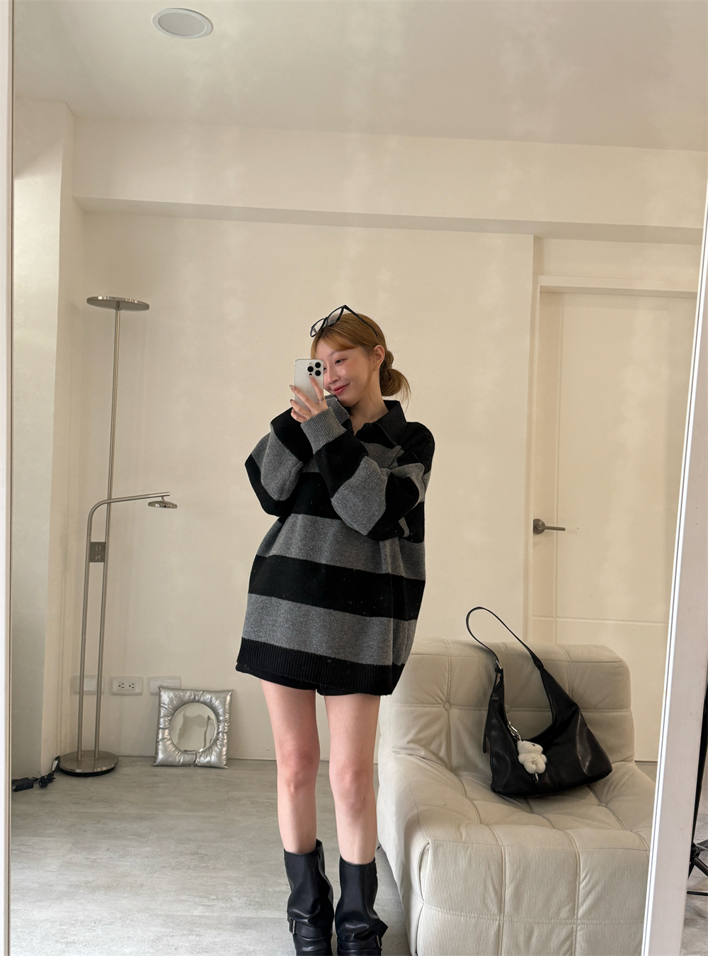 // 日常寬鬆的大毛衣配上牛仔領設計太喜歡♡