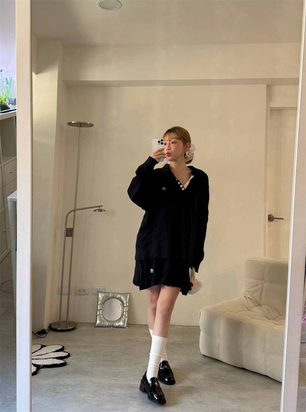 // 學院風氛圍感套裝♡♡♡ 裙子是微長板 想穿長或短都OK!