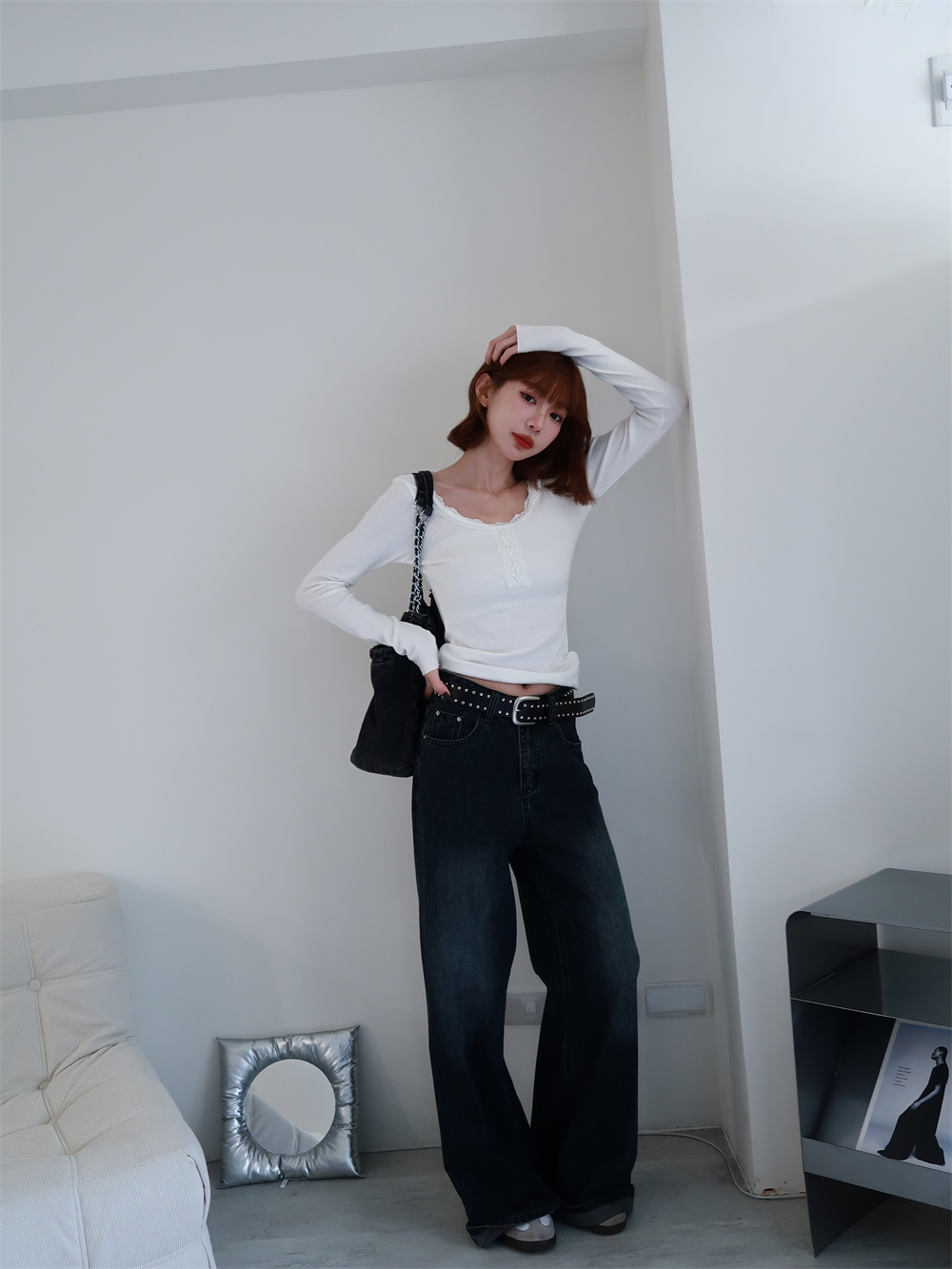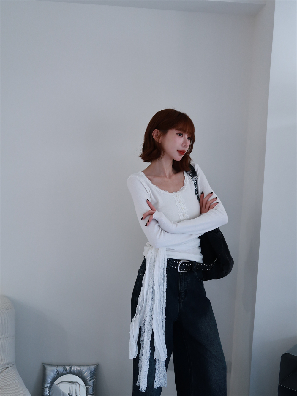 // 附蕾絲綁腰♡領子的蕾絲氛圍太喜歡♡單穿或綁繩都好看!