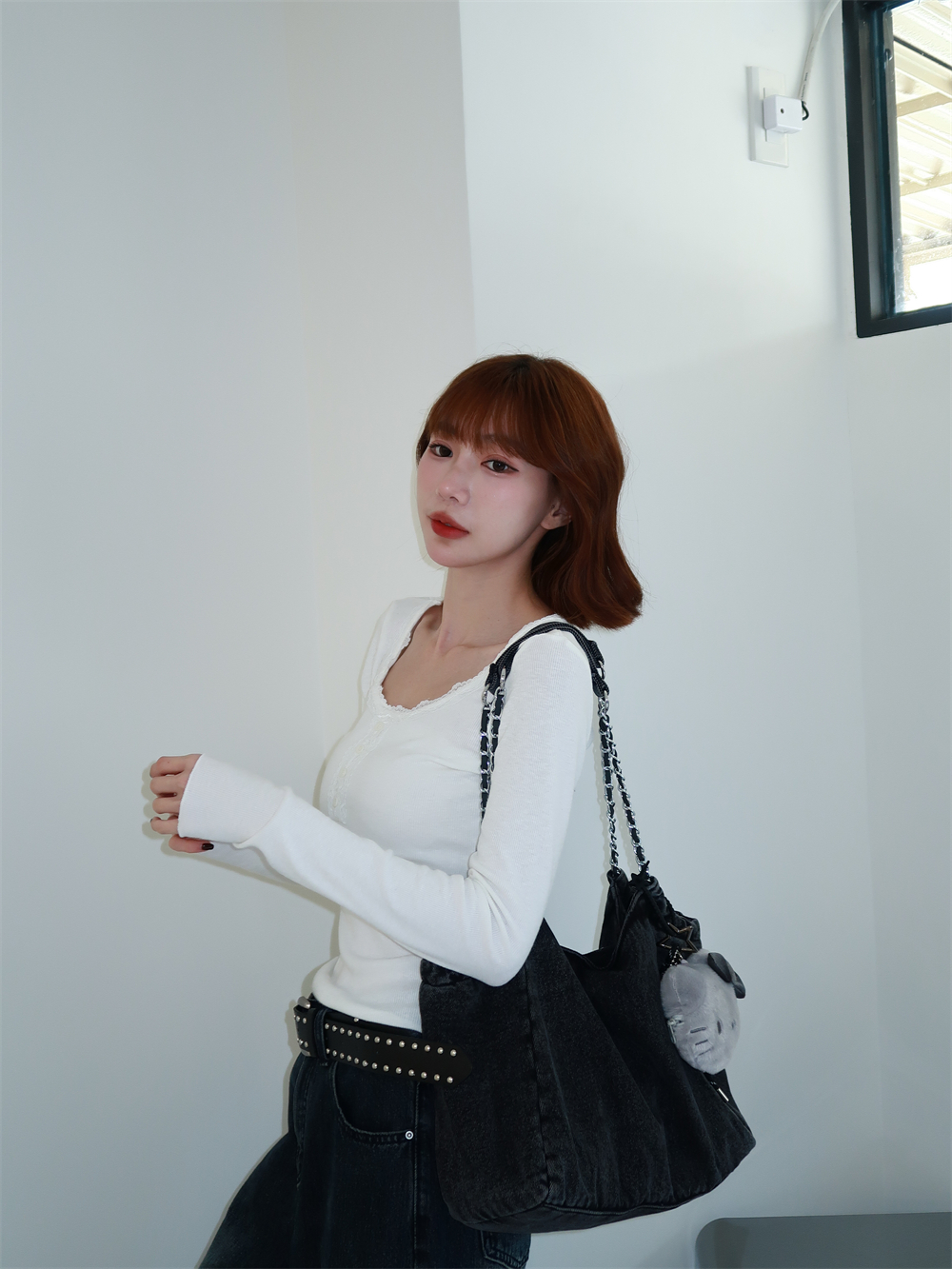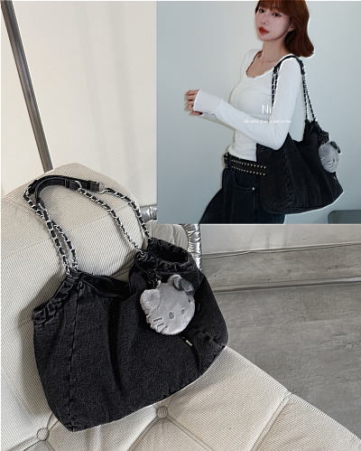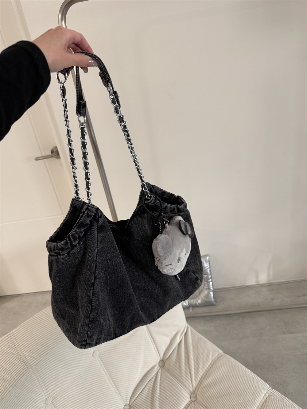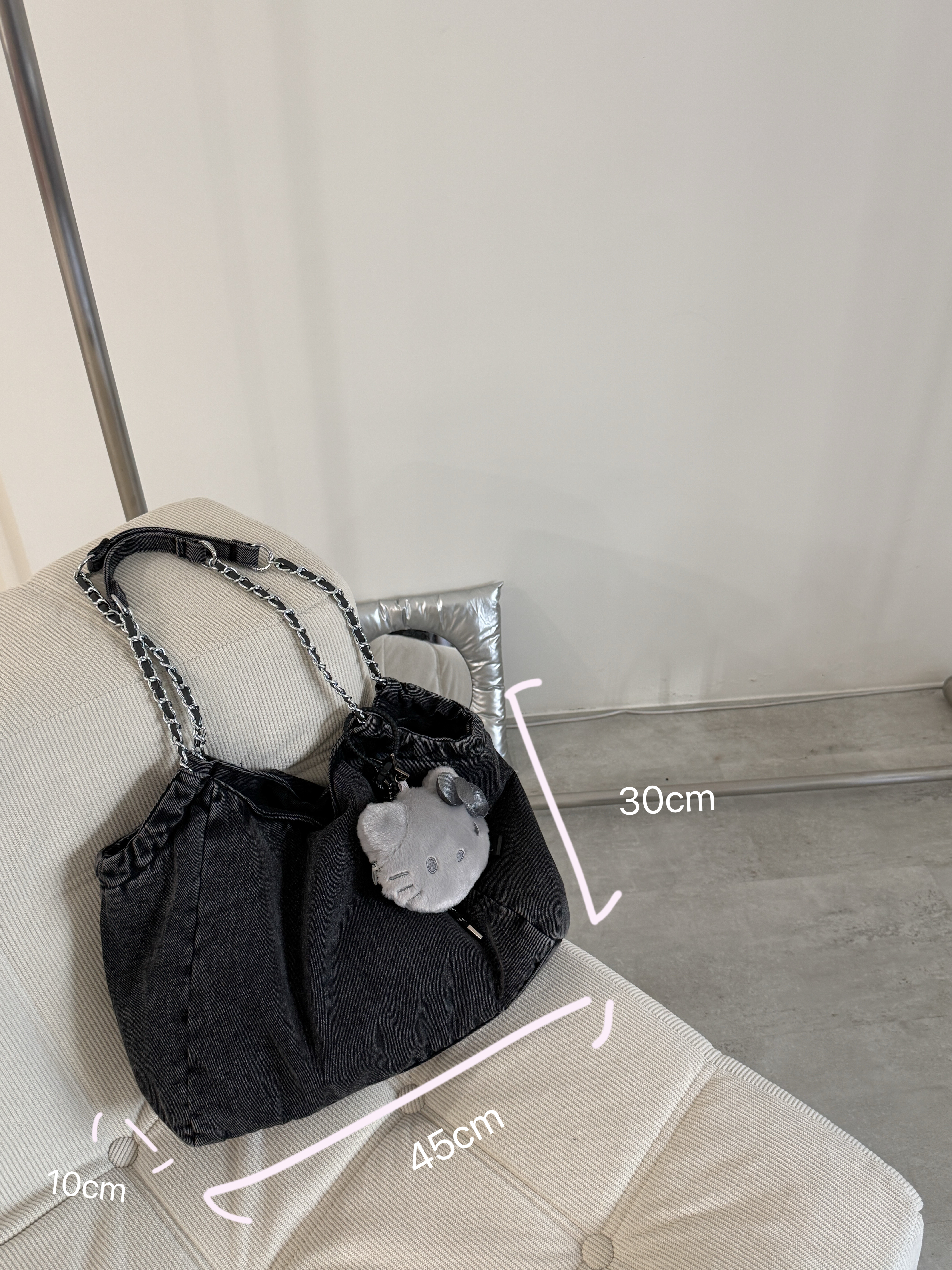 // 巨好看百搭碳黑牛仔布包♡搭配鏈條真的太好看啦!!!!