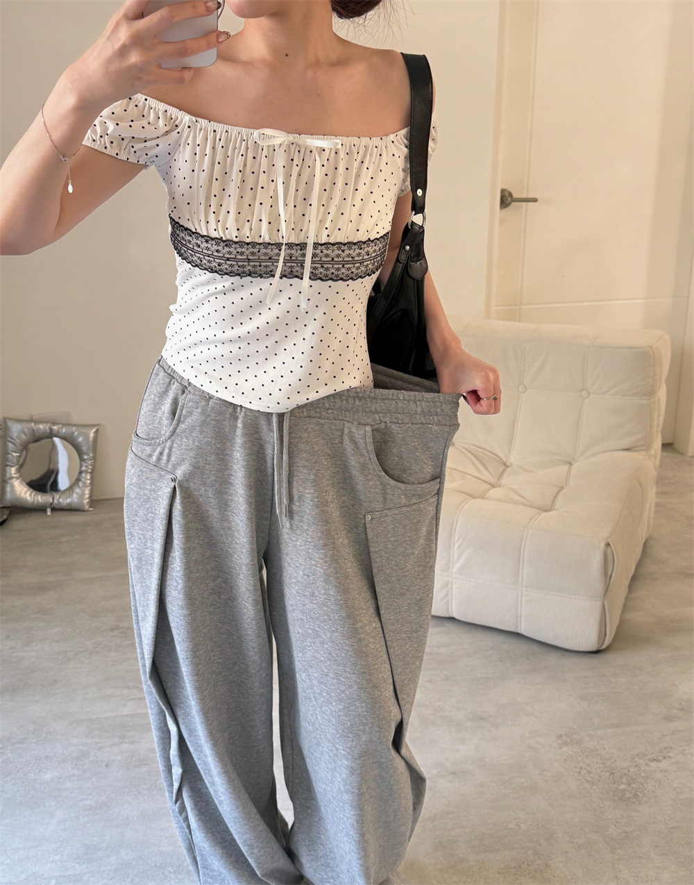// F SIZE:彈性可穿至XS-小XL (褲管可縮口 小隻女不怕踩地!)